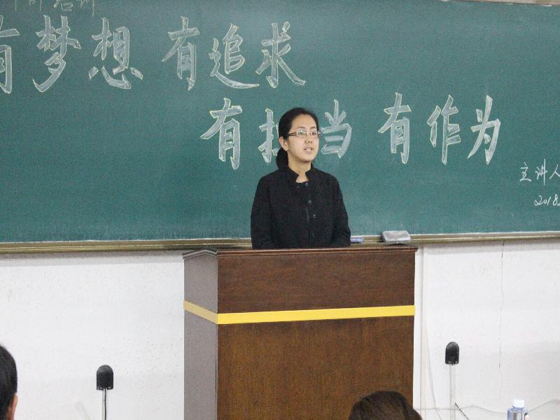 接着,学生工作部王菲老师上台为学生干部们培训。王菲老师主要负责的是学生的就业工作和心理健康教育工作,简单的介绍后王老师表示自己希望多为学生们工作,很愿意帮助学生们解决问题。