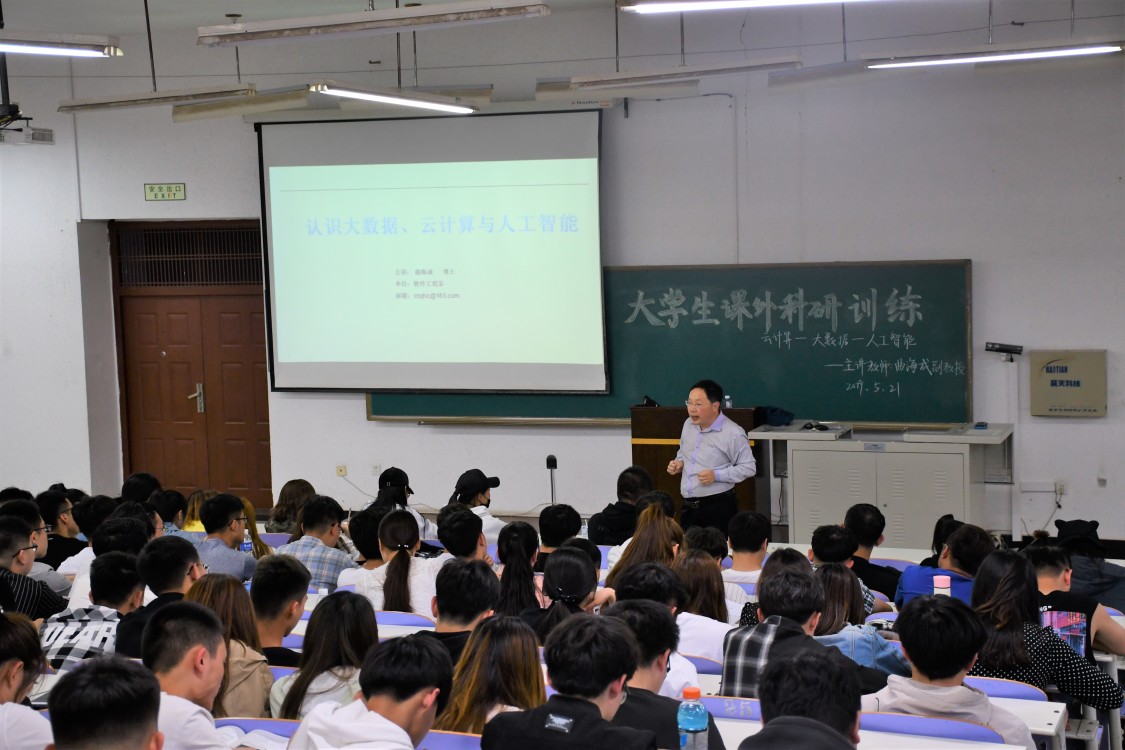 曲教授演讲循循善诱,频频联系生活,深入浅出地讲解扫清了同学眼前的迷雾,使同学们对云计算人工智能大数据也有了更加全面的理解。最后,在同学们的热烈掌声中,此次演讲完美结束。