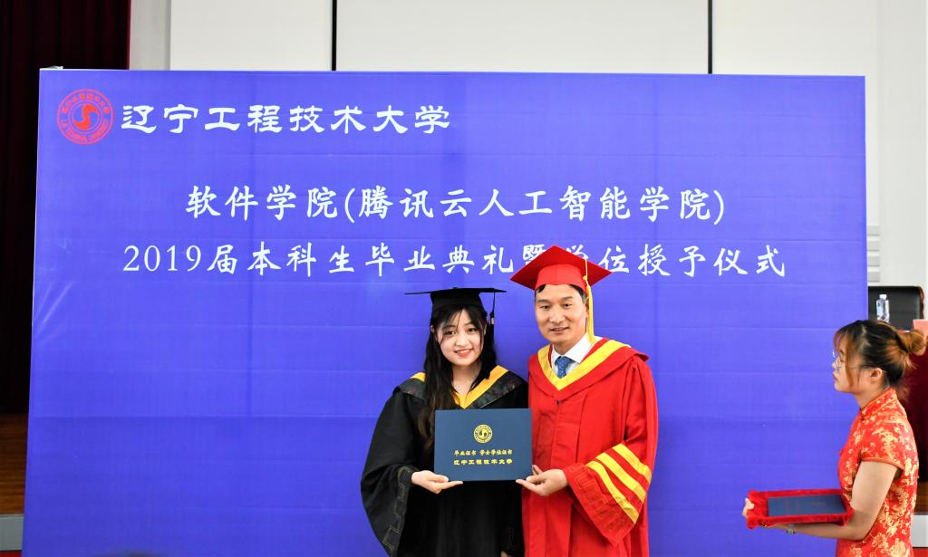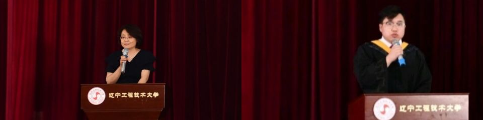其后,郭伟老师代表毕业班班导师发言,希望毕业生能继续求知若渴,追求成功的同时,学会感受生活。郭老师还特别寄语女同学,希望她们一定要拥有自己的事业,活成自己想要的模样! 最后,软件15-5班毕业生孙振东代表学院2019届全体毕业生发表了毕业感言:“感谢全院领导和老师一直以来对我们的教育、关怀和照顾,我们会始终牢记自己是“辽宁工大人”,将“诚朴求是、博学笃行”的校训发扬光大,带着“朴实无华、坚韧顽强、无私奉献”的太阳石精神朝着美好未来奋力前进。”一字一句道出了全体毕业生对于母校的不舍与感恩,对于未来的憧憬和希望。