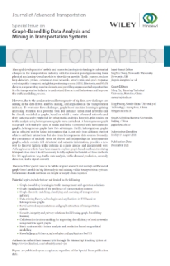 本次专刊目的是征集、发表关于图模型在交通大数据分析中的理论与应用创新方面的原创研究。随着移动传感器技术的蓬勃发展,交通领域的研究范式从基于物理机制的模型转向数据驱动的模型。各类传感器,如环形探测器、探针、路网中的摄像头、智能卡、公共交通中的快速反应码,以及全球定位系统(GPS)、蓝牙和Wi-Fi设备,正在产生大量的数据集,为交通领域理解多样化的出行行为和改善交通建模过程提供前所未有的机会。然而,由于交通系统的复杂性和异质性,在交通行业的数据分析、挖掘和应用中出现了新的挑战。为了应对这些挑战,基于图的机器学习作为一个强大的工具,受到越来越多的关注。例如,将城市道路网络建模为图模型,并利用图深度学习技术进行城市交通分析。另外,由于交通大数据的多源异构特点,基于异质图的数据挖掘方法能为交通隐含模式的发现提供新的途径。尽管目前相关领域的研究已经取得了些许进展,但仍有必要充分挖掘这些方法在智能交通应用中的优势(如交通状态分析、交通需求预测、异常检测、交通信号控制)。