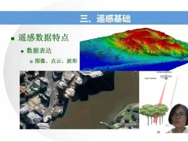 王老师首先介绍了遥感的原理和类型。遥感取得的前期成果,如被动遥感和主动遥感;然后又讲述了遥感在数据表达和数据特性上的特点;最后王老师介绍了遥感在现实生活中的用途,如:伪装目标,军事伪装目标的探测,导弹预警,干旱预报,农业信息提取和长势监测等等。
