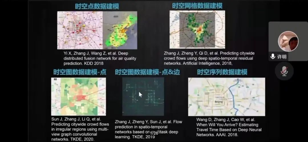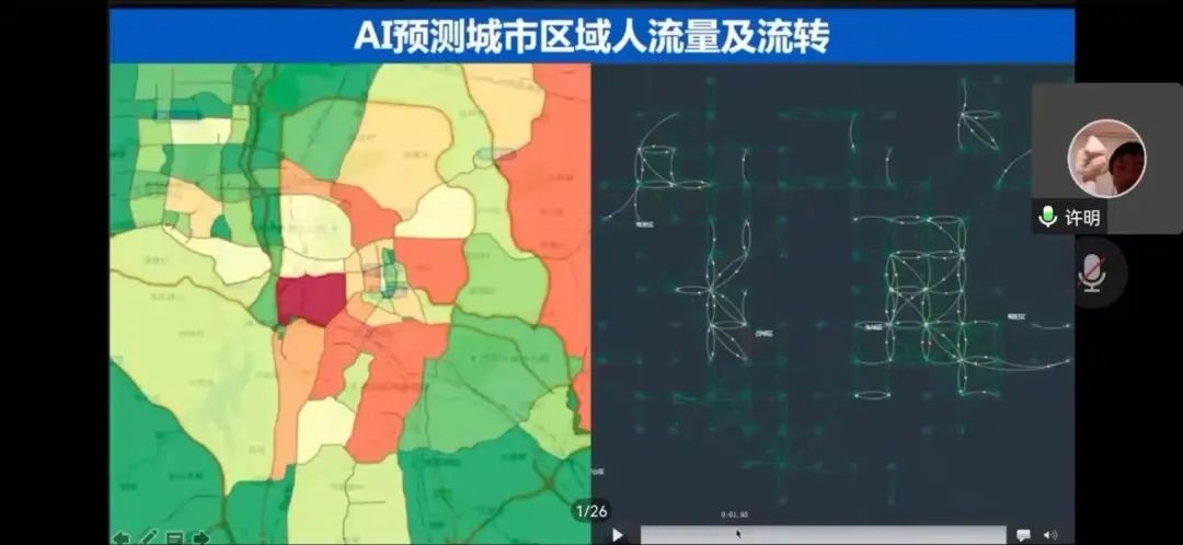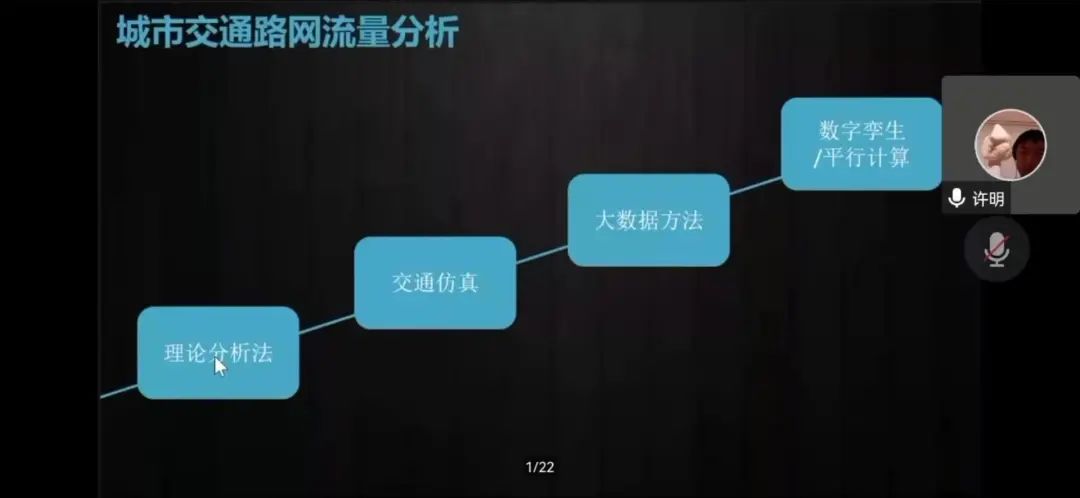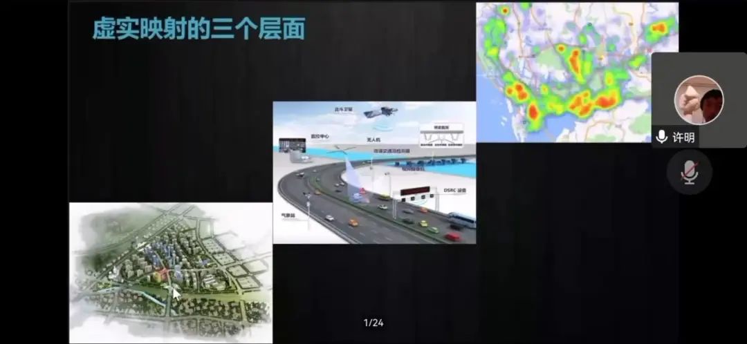 许老师首先通过城市交通网络的流量分析引入话题,大量的交通网络要通过物理世界和数字孪生结合的方式进行分析。接下来许老师3D模拟演示了交通网络现状,形象的讲解人工智能如何作出虚实映射。最后,许老师通过多项此方面研究的实验以及检测内容的讲解结束了本次讲座。