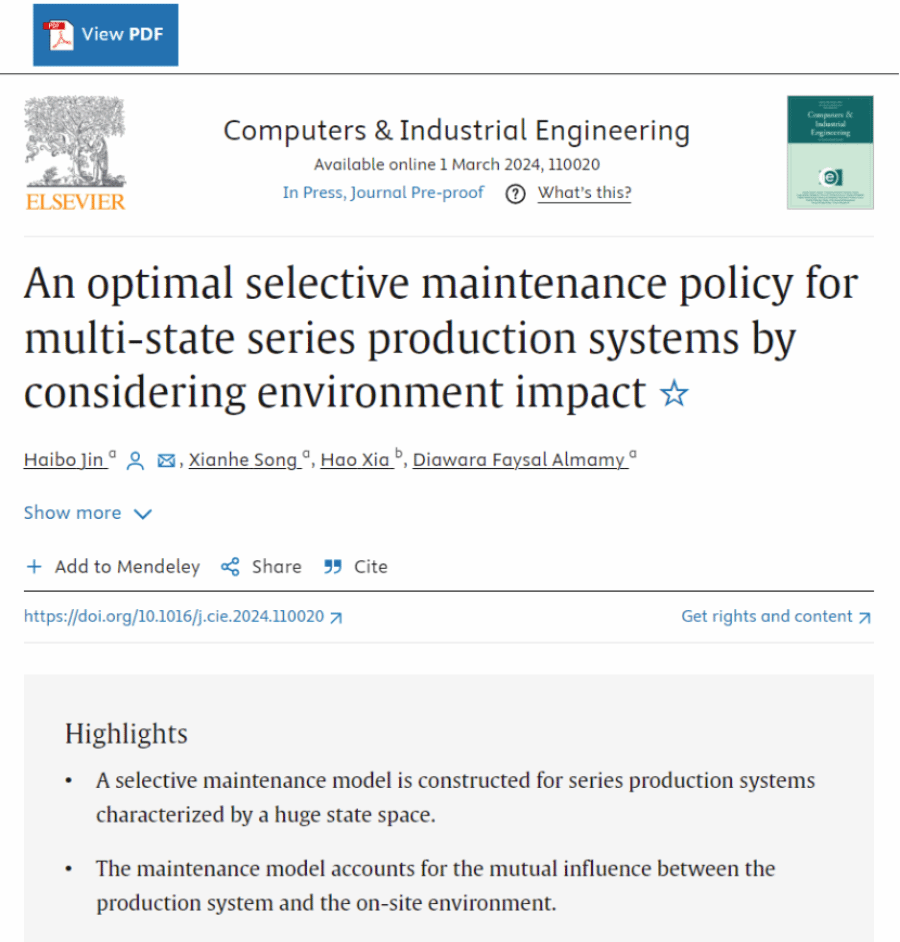 金海波副教授科研团队又一篇高水平研究论文被中科院1区Top期刊《Computers & Industrial Engineering》录用,目前已完成proof工作。