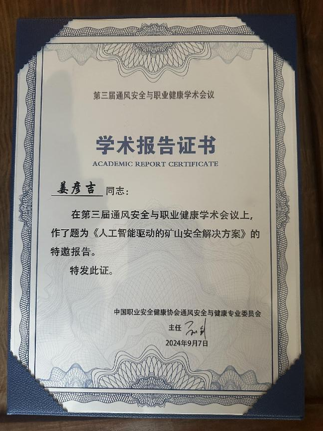 副院长姜彦吉作为特邀嘉宾,分享了题为“人工智能驱动的煤矿安全解决方案”的报告。报告展示了人工智能技术在煤矿安全领域的最新研究成果,如何通过智能化手段提升矿井的安全性能和作业效率,利用人工智能技术来解决传统采矿业面临的安全挑战,促进行业内部的技术革新和安全标准的提升。此次报告积极推动了学科的交叉融合。