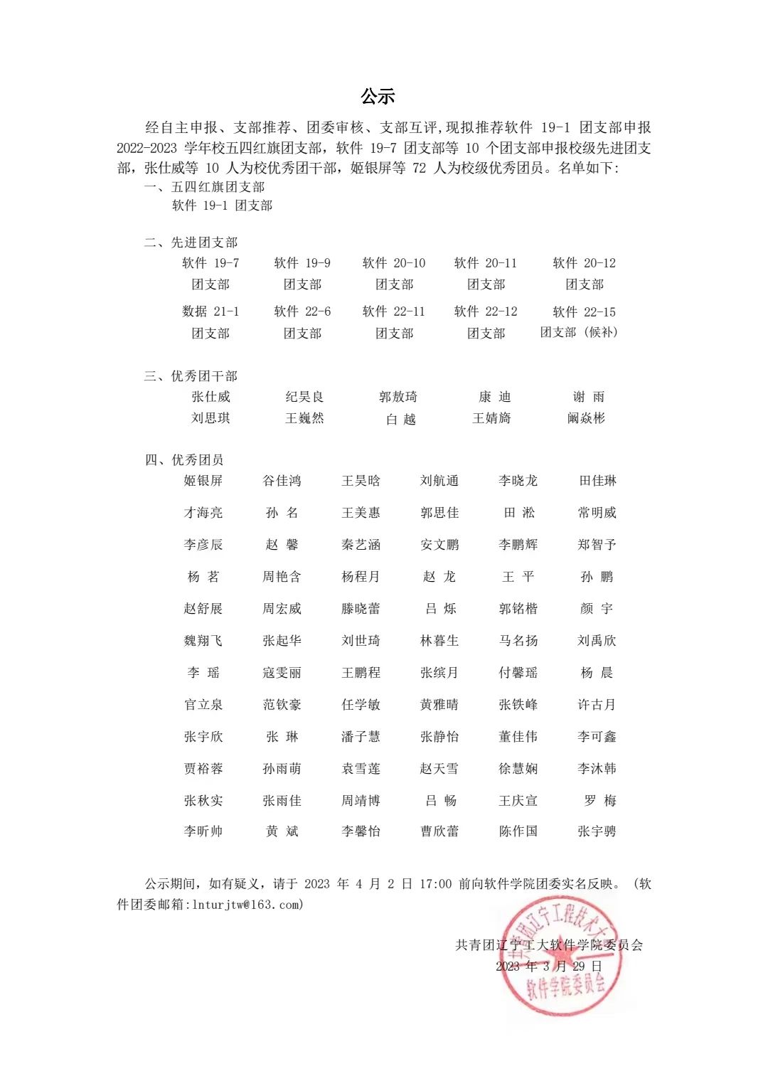 2022-2023学年五四评优公示