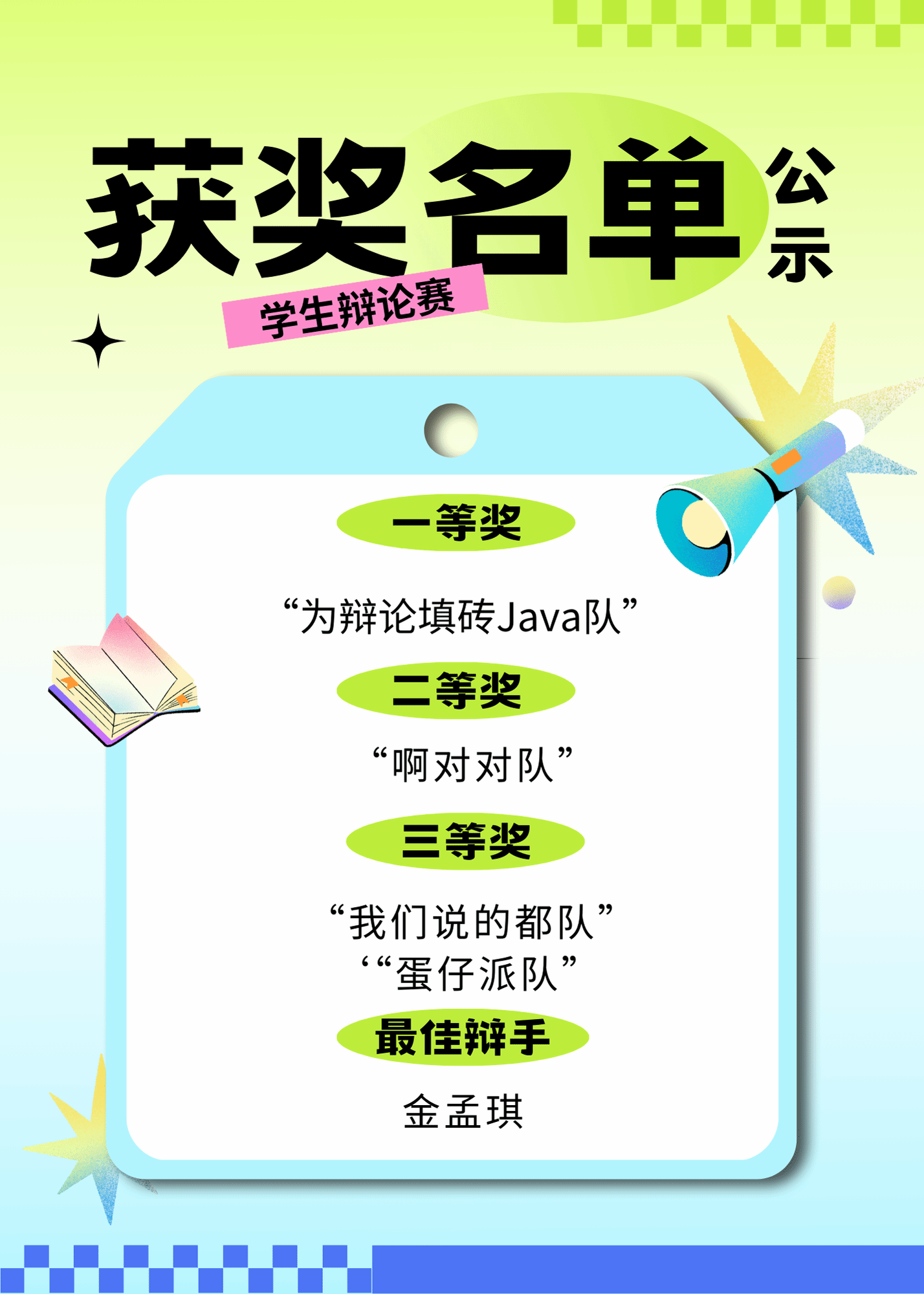 此次辩论赛不仅展现了软件学子们出色的逻辑思维与语言表达能力,还通过跨学科议题探讨,促进了科技与人文的思想碰撞。期待软件学子继续保持这种勤于思考、善于思辨的态度,在未来的生活中充分的展现自我,生动演绎新时代青年的朝气与活力。