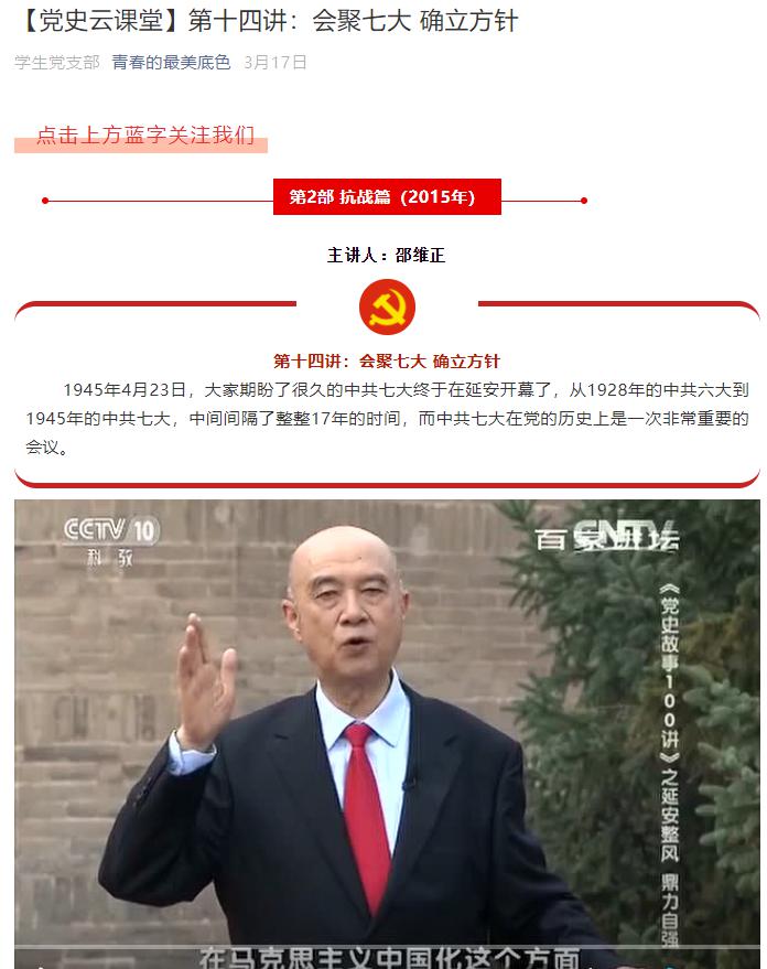 将党史学习教育课堂开在云端。3月1日起,学院在党史学习教育公众号推出“党史云课堂”,将一百集党史故事分五十四期视频进行每日推送。