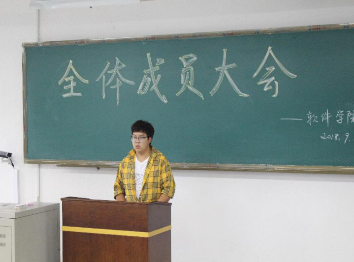 会议伊始,部员们轮流上台进行自我介绍,讲述了自己对于所在部门的认识和前一阶段工作的感受。然后由各个部门部长和副部长进行简单的工作总结,指出部门现存的问题并且对部员以后的工作提出了期望。会议在严肃认真且又不失活泼的氛围中进行,室内不时有笑声响起。