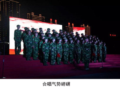 2019级新生合唱团朝气蓬勃、昂扬向上,他们用饱满的激情和高亢嘹亮的歌声赞美人民军队,用大气磅礴的歌声赞美了中华民族自强不息的伟大精神,唱出了阔步向前的豪迈气概,歌颂了新时代大学生对祖国、对党浓厚深情。歌声给人深刻印象、令人兴奋、令人感动。