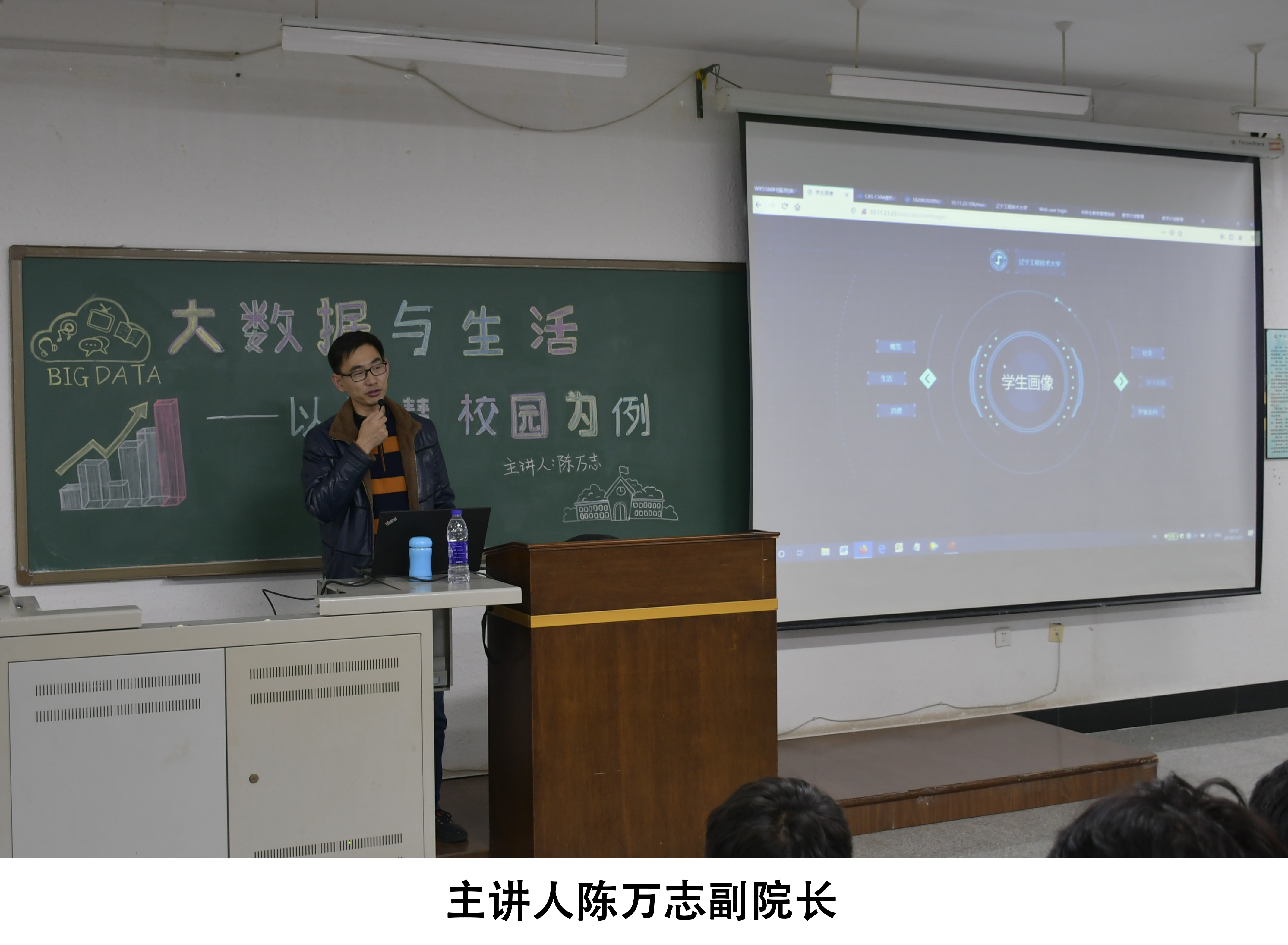 此次讲座陈老师以通俗易懂,诙谐幽默的讲解结合日常生活实际形象的介绍了大数据在校园的应用,让同学们对于大数据与校园生活有了更深的了解,这次讲座使同学们受益匪浅,最终本次讲座在热烈的掌声中圆满结束。