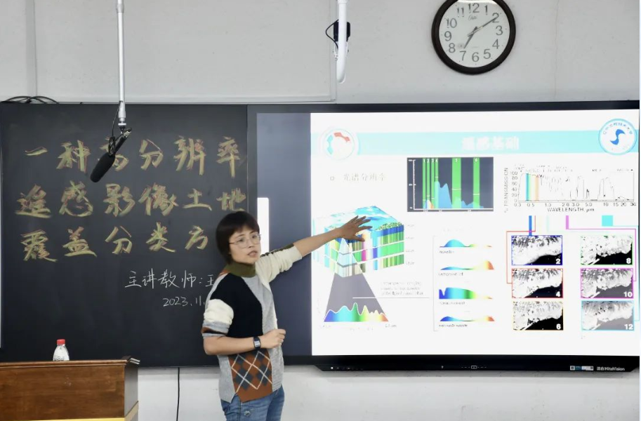 讲座伊始,王春艳副教授从遥感技术和高分辨率遥感影像土地覆盖分类两大方面进行了主要概述。接下来,王老师从遥感的基础定义出发,引导大家深入理解并分析遥感数据,并对遥感的来源进行了介绍。之后,王老师通过对遥感技术的基本过程的讲解,引出了遥感的类型,并且对可见光和红外遥感等类型进行了细致的阐述,同时介绍了遥感技术在不同领域的实际应用。最后,王老师通过具体的模型向同学们生动地演绎了相关概念,使得抽象的理论变得更加形象和易于理解。