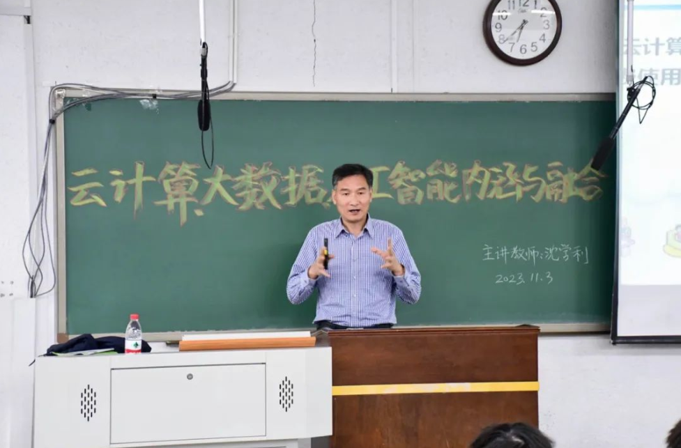 11月3日晚18:30,学院在尔雅楼109举办了《云计算、大数据、人工智能内涵与融合》讲座,本次讲座由学院院长沈学利教授主讲,学院2022级300余名学生参加了本次讲座。
