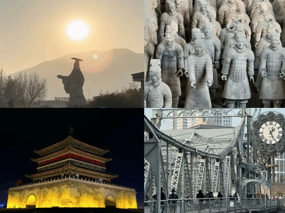 →西安:秦始皇帝陵博物馆、鼓楼、古城城墙、大雁塔