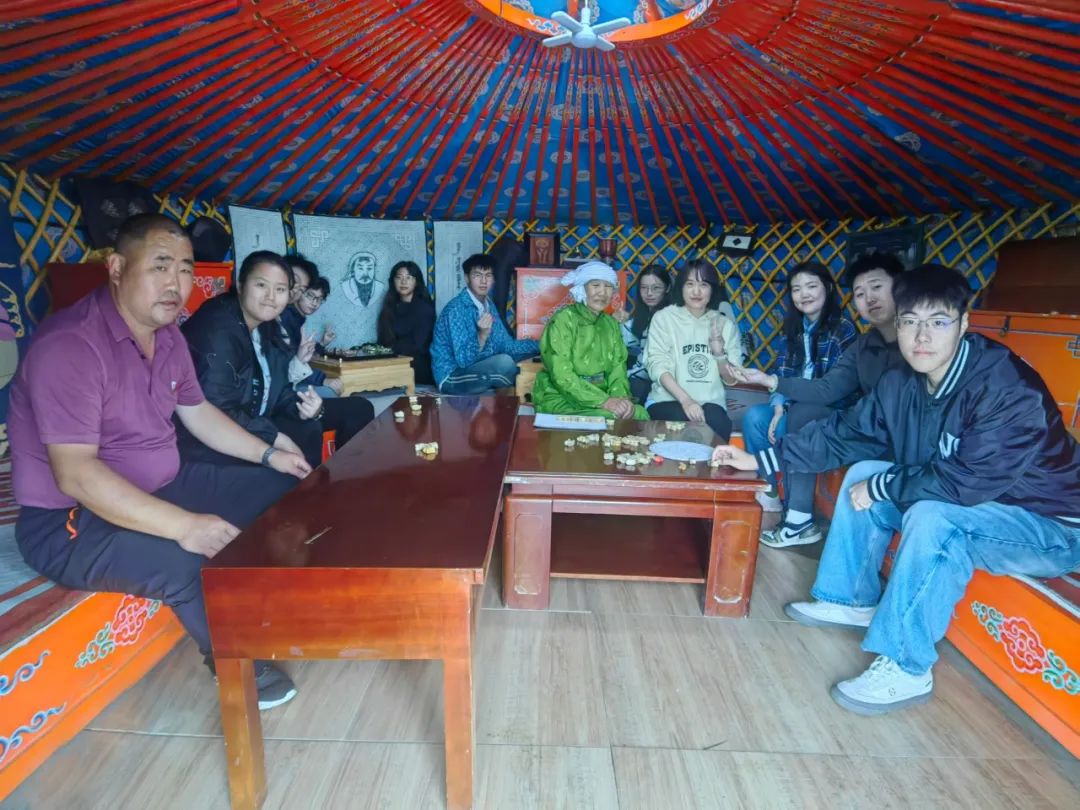 实践团的最后一站来到了脑木罕嘎查牧户的阿音嘎家展开“三下乡”活动。64岁的敖云格勒奶奶为实践团准备了草原美食“查干伊德”(奶食)、展示了蒙古象棋和“嘎拉哈”(羊拐)的玩法;阿巴嘎旗职业教育综合服务中心的乔主任为青年学子介绍了草场冬营盘和夏营盘的区别、蒙古包的制作工艺以及草原牧民多样的发电方式。团队成员还与内蒙古同胞一起体验了篝火晚会、草原赛马、观看日落、仰望星空等活动,在广袤无垠的大草原上,畅所欲言,载歌载舞,激发了团队成员对草原的热爱,加深了与内蒙同胞的深厚情谊。他们捕捉草原上的动人瞬间,通过镜头和话语传递对自然与生活的热爱。