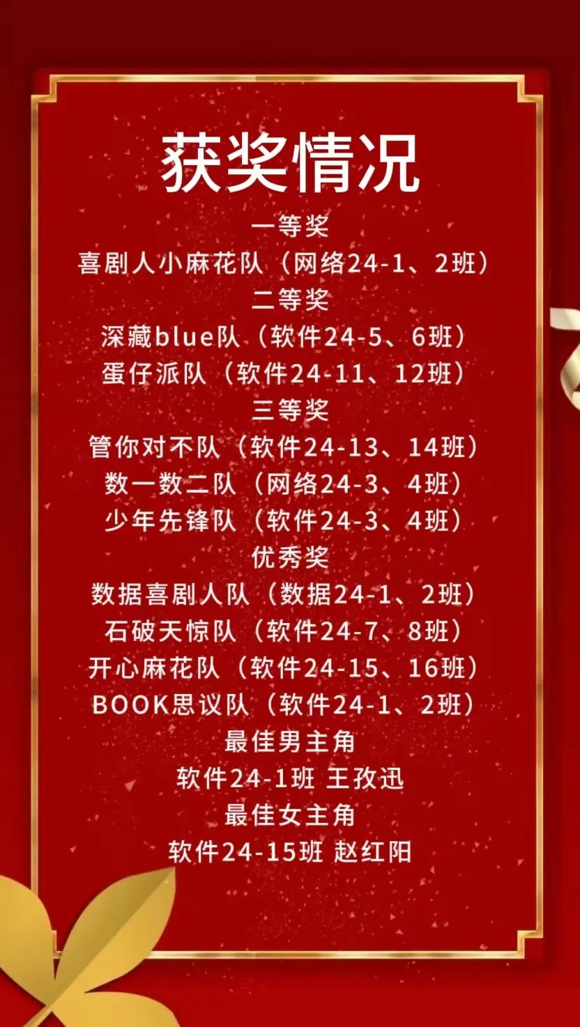 本次喜剧人大赛,不仅为热爱喜剧的学子提供了一个展示自我、放飞梦想的舞台,更让我们见证了喜剧人的才华与激情,感受到了喜剧艺术的独特魅力与强大力量。每一个节目都是一次心灵的触动,每一个笑点都蕴含着深刻的人生哲理。虽然喜剧人大赛已经圆满落幕,但2024级新生的故事才刚刚开始,他们正以青春的笔触,书写着专属于2024级新生的辉煌篇章!