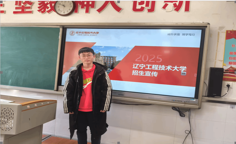 数据24-2班的姚程一德同学回到鞍山市第八中学开展寒假招生宣传专题实践活动。